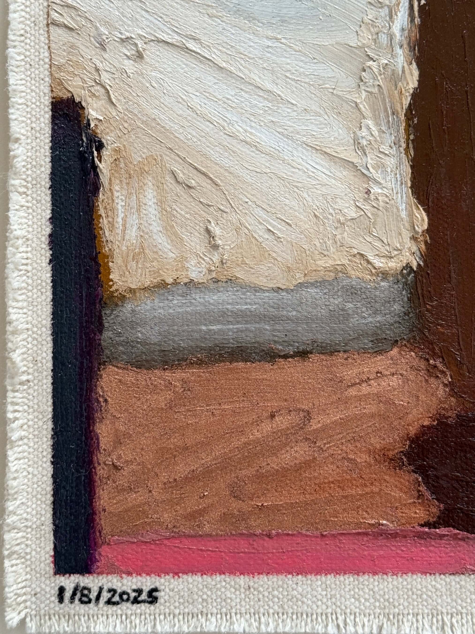 Each of these small works is painted daily, a fragment of time held in color. They capture the fleeting moods, subtle energies, and overlooked details of a single day. Dated and unrepeatable, each study marks its moment in time, a quiet celebration of life as it passes and a fragment to hold close.