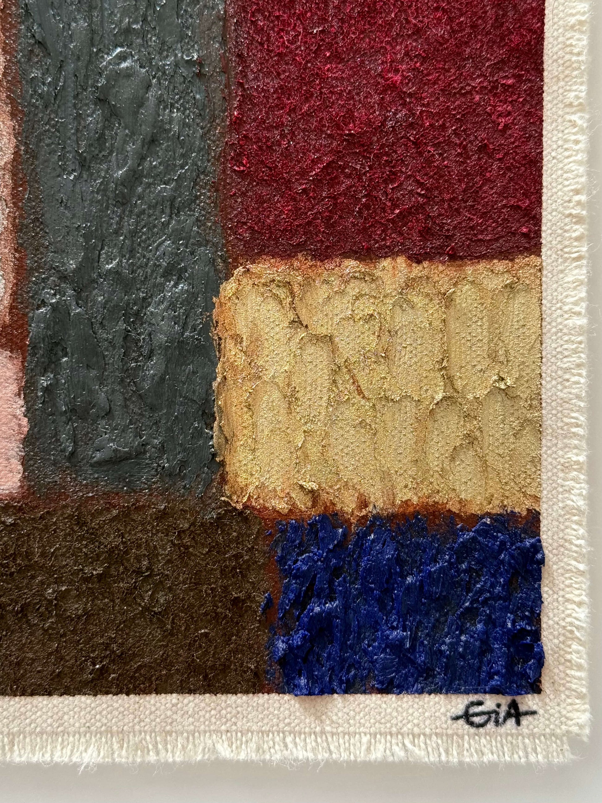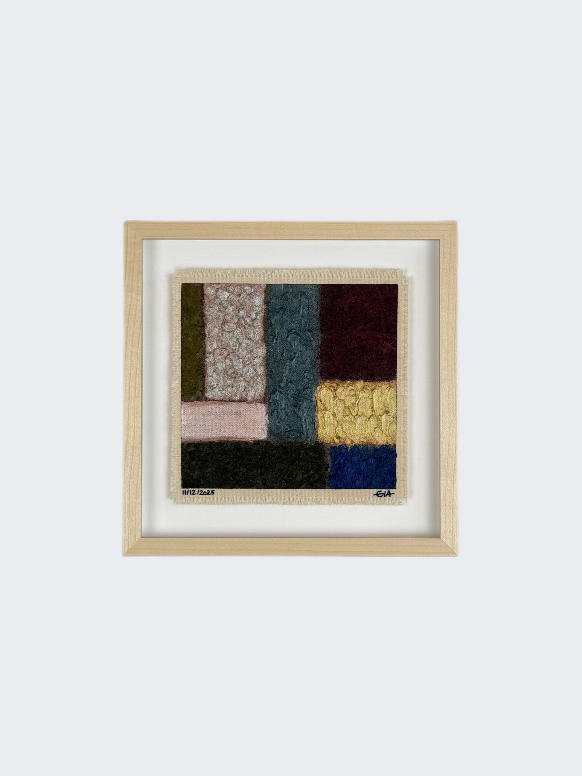 Painted with rich, vibrant oil pastels on raw heavy canvas, each artwork is signed and dated, then professionally framed in a natural maple wood object frame with a floating mount behind white glass. The compact frame includes professional hanging and wall stoppers on the back, and is designed for versatile display on the wall, standing upright on a shelf, or laid flat on a table.