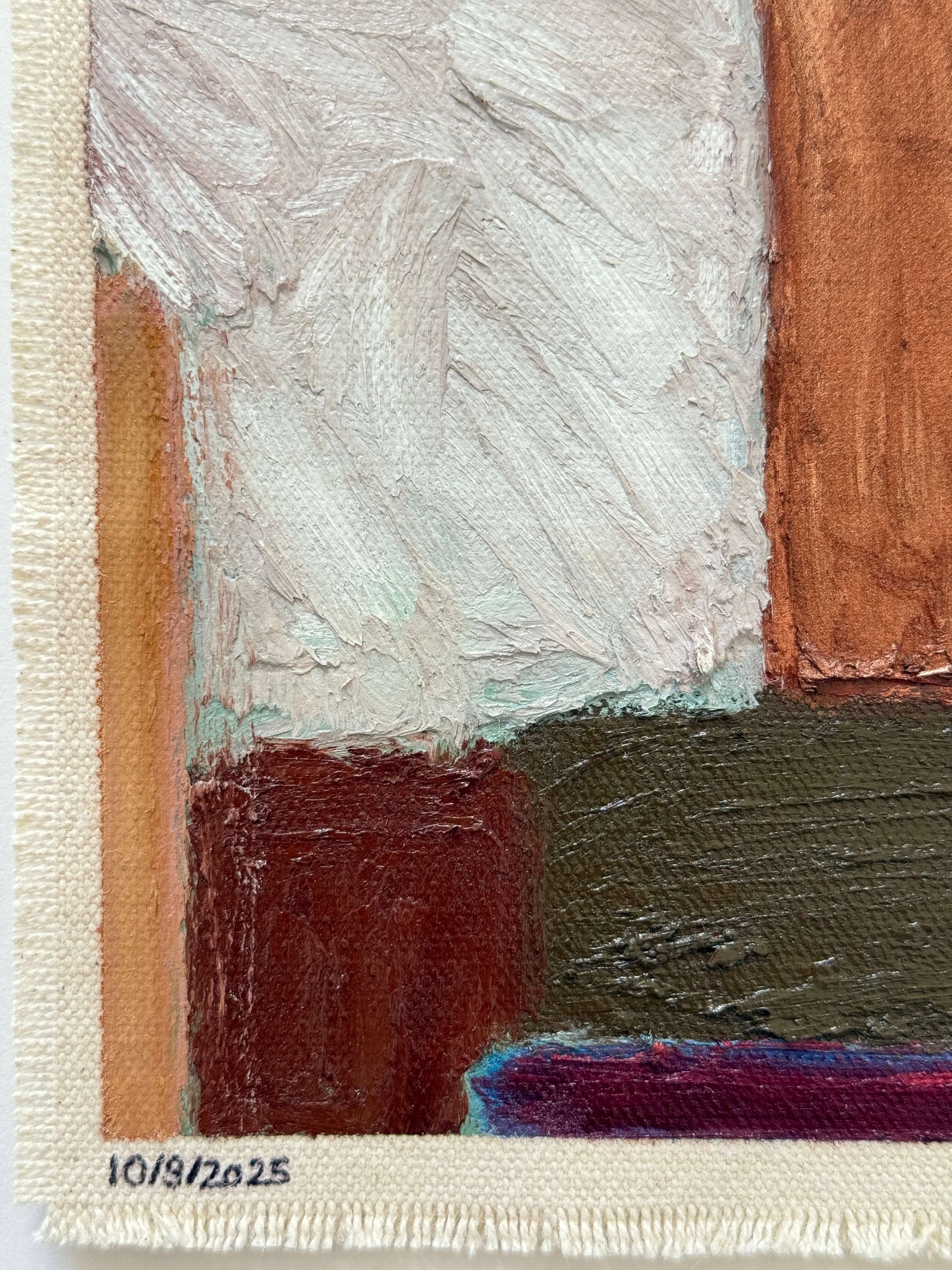 Each of these small works is painted daily, a fragment of time held in color. They capture the fleeting moods, subtle energies, and overlooked details of a single day. Dated and unrepeatable, each study marks its moment in time, a quiet celebration of life as it passes and a fragment to hold close.
