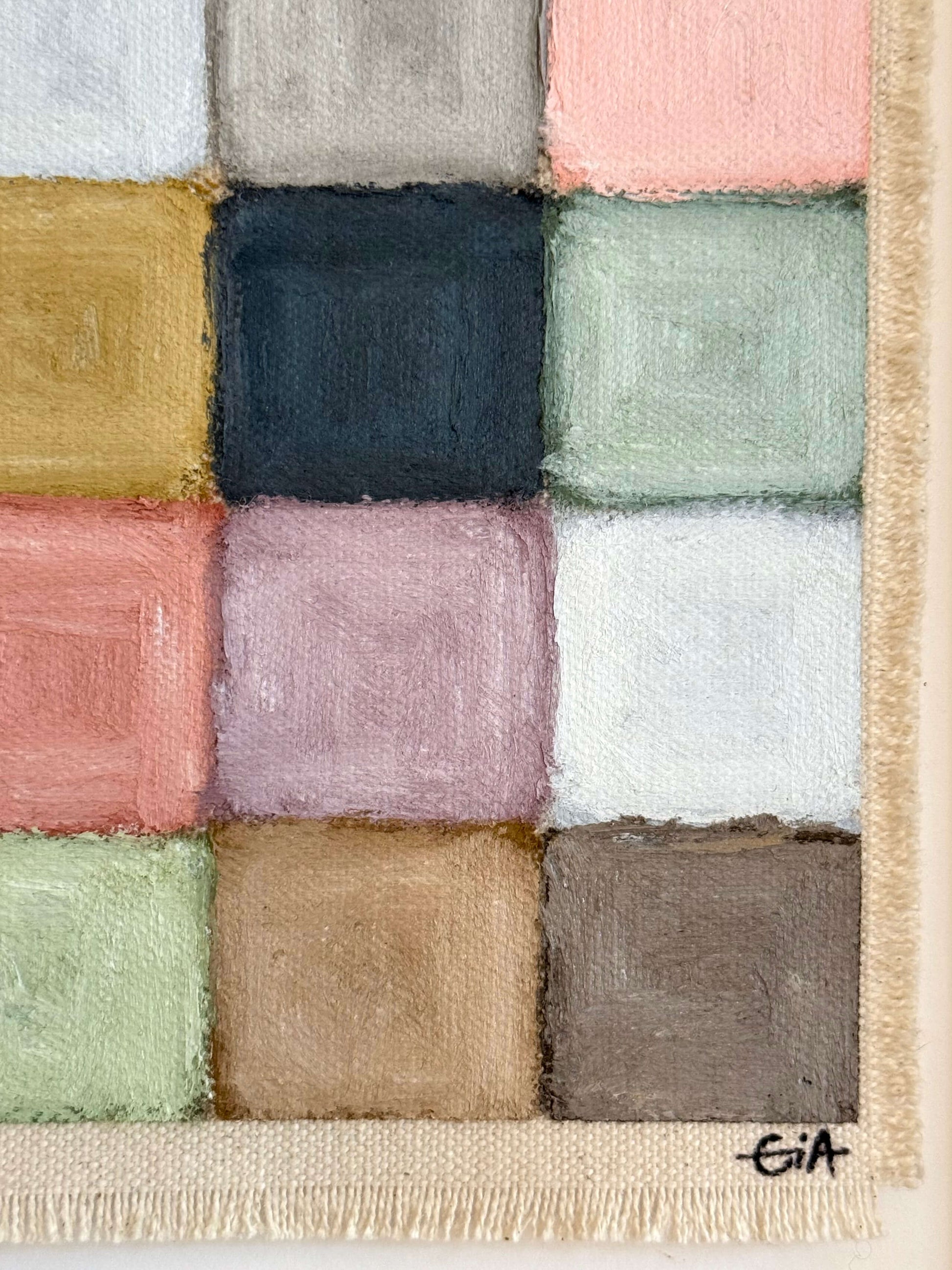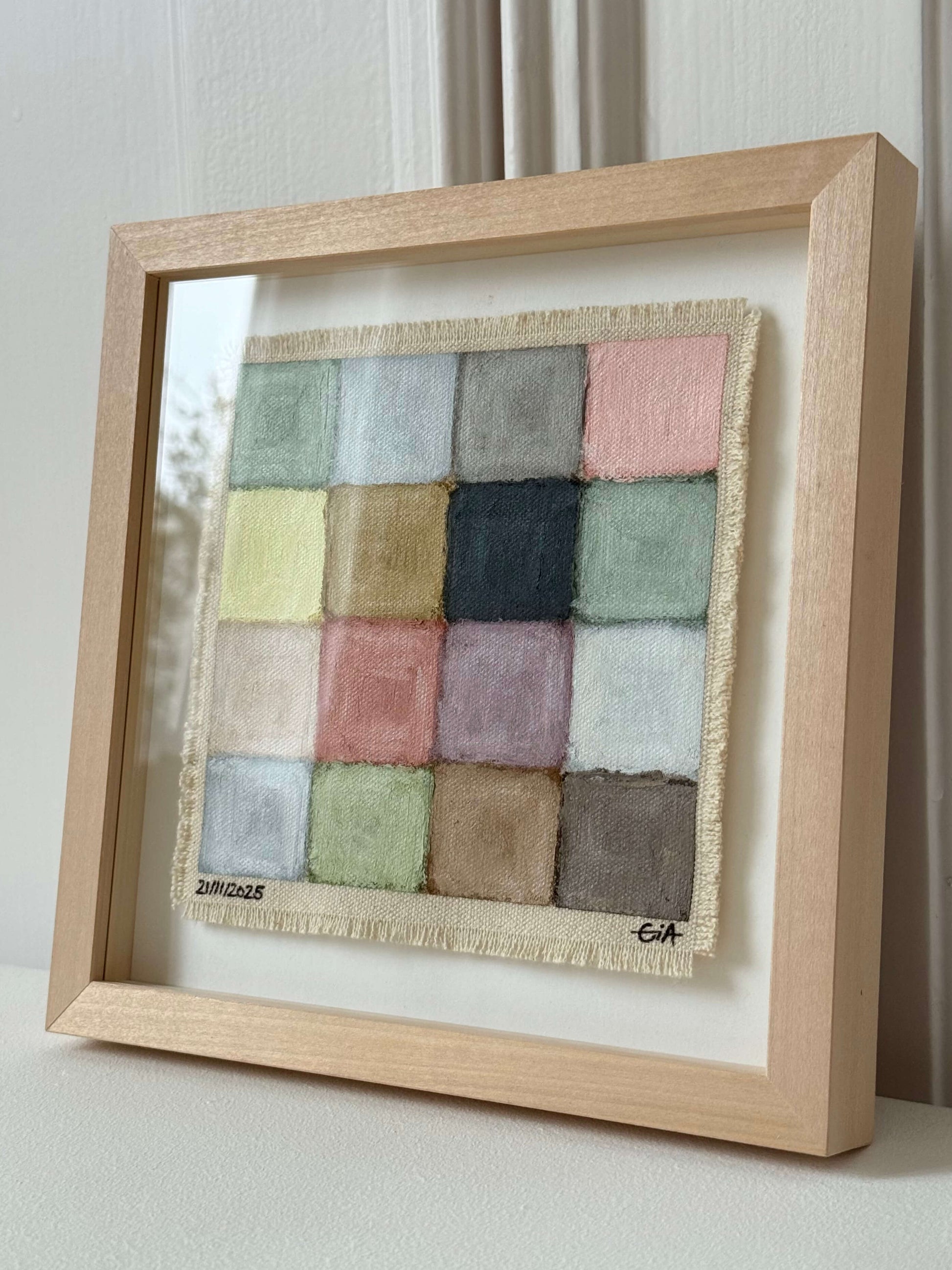 Painted with rich, vibrant oil pastels on raw heavy canvas, each artwork is signed, dated, and professionally framed in a wooden object frame behind glass. The compact frame is designed for versatility, it can be hung on the wall, stood upright on a shelf, or laid flat on a table.