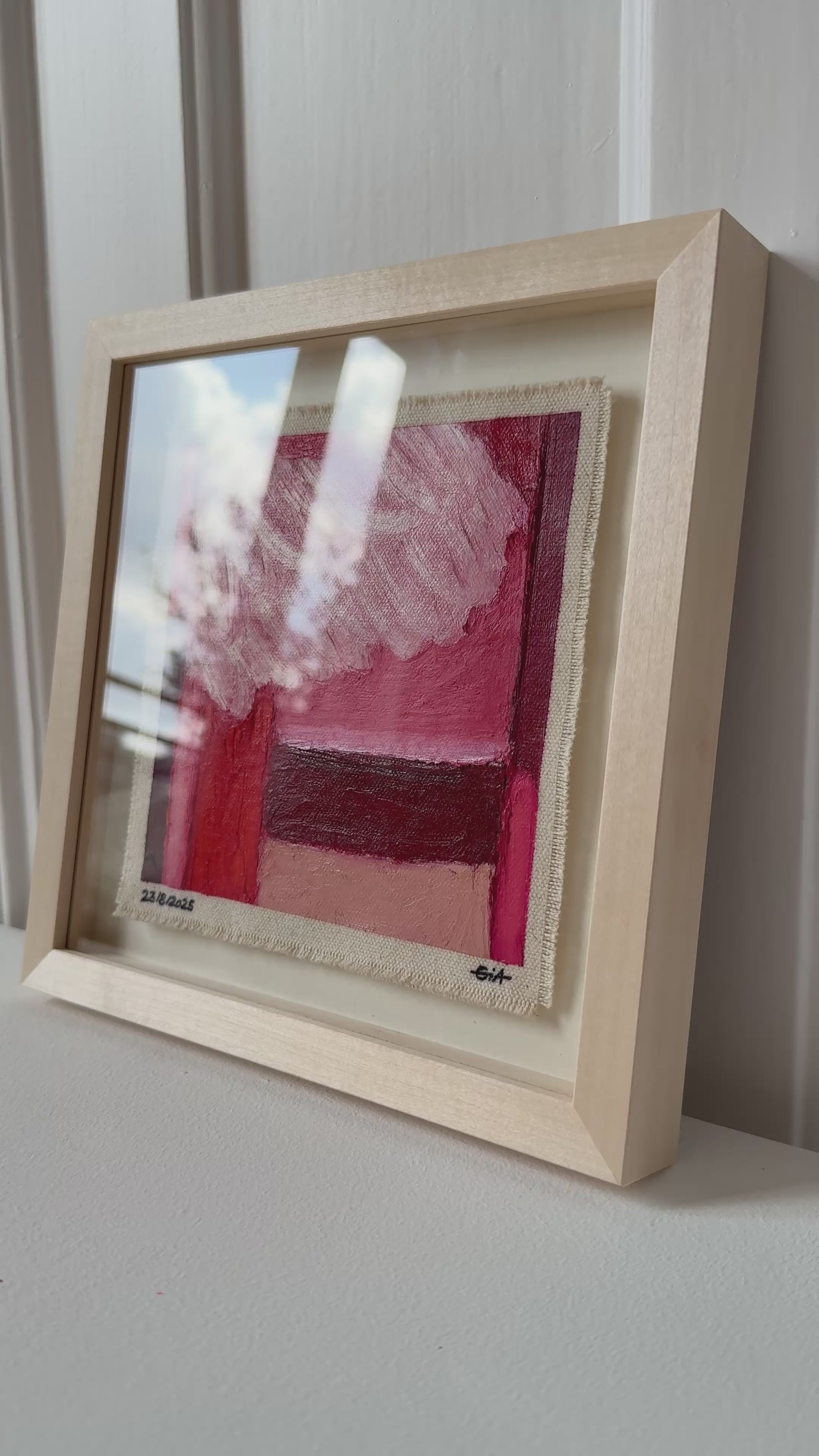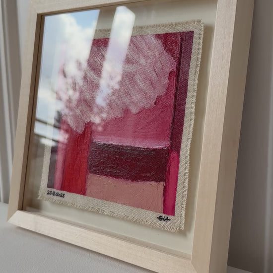Painted with rich, vibrant oil pastels on raw heavy canvas, each artwork is signed, dated, and professionally framed in a wooden object frame behind glass. The compact frame is designed for versatility, it can be hung on the wall, stood upright on a shelf, or laid flat on a table.