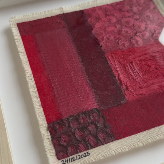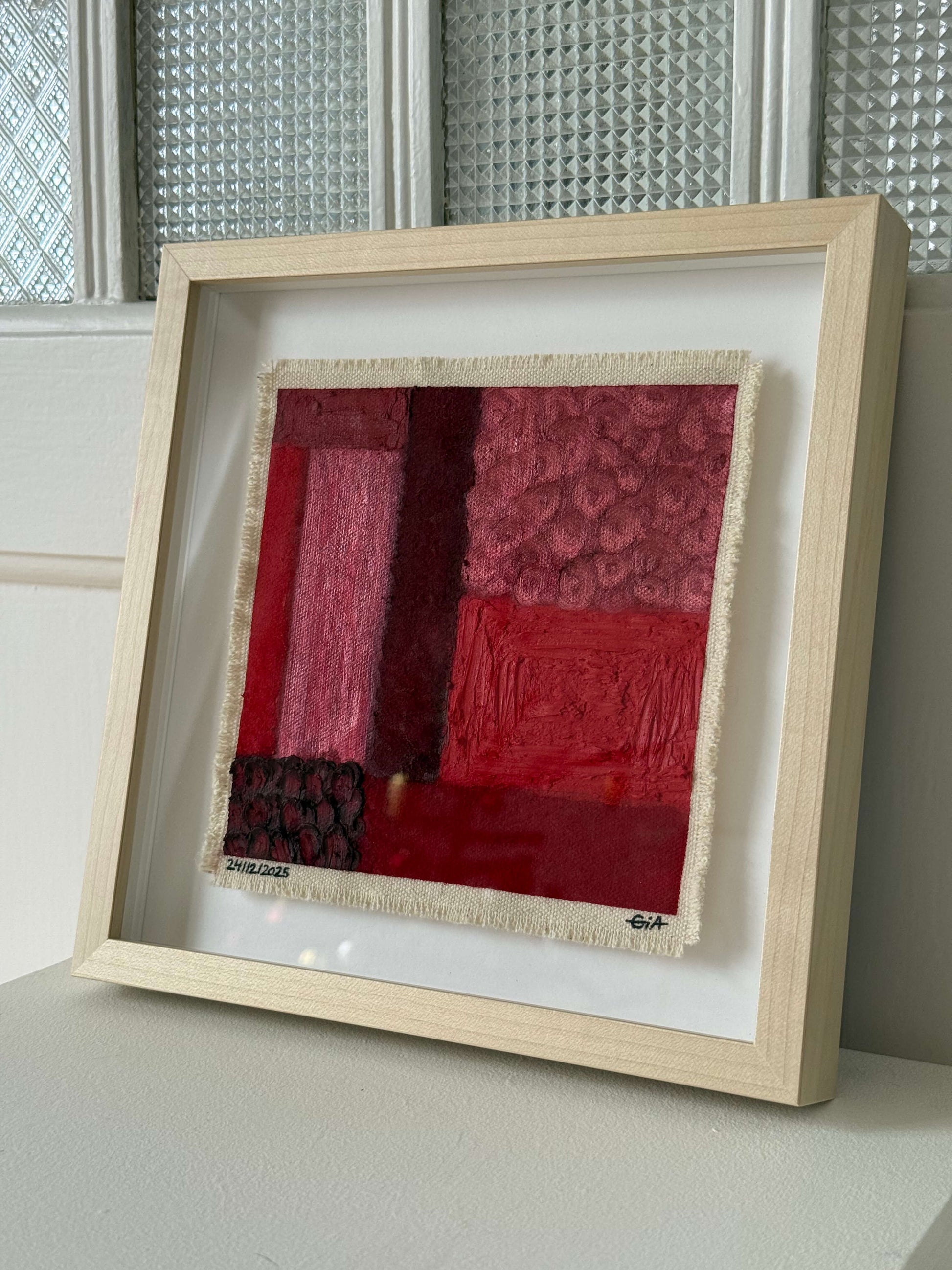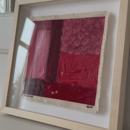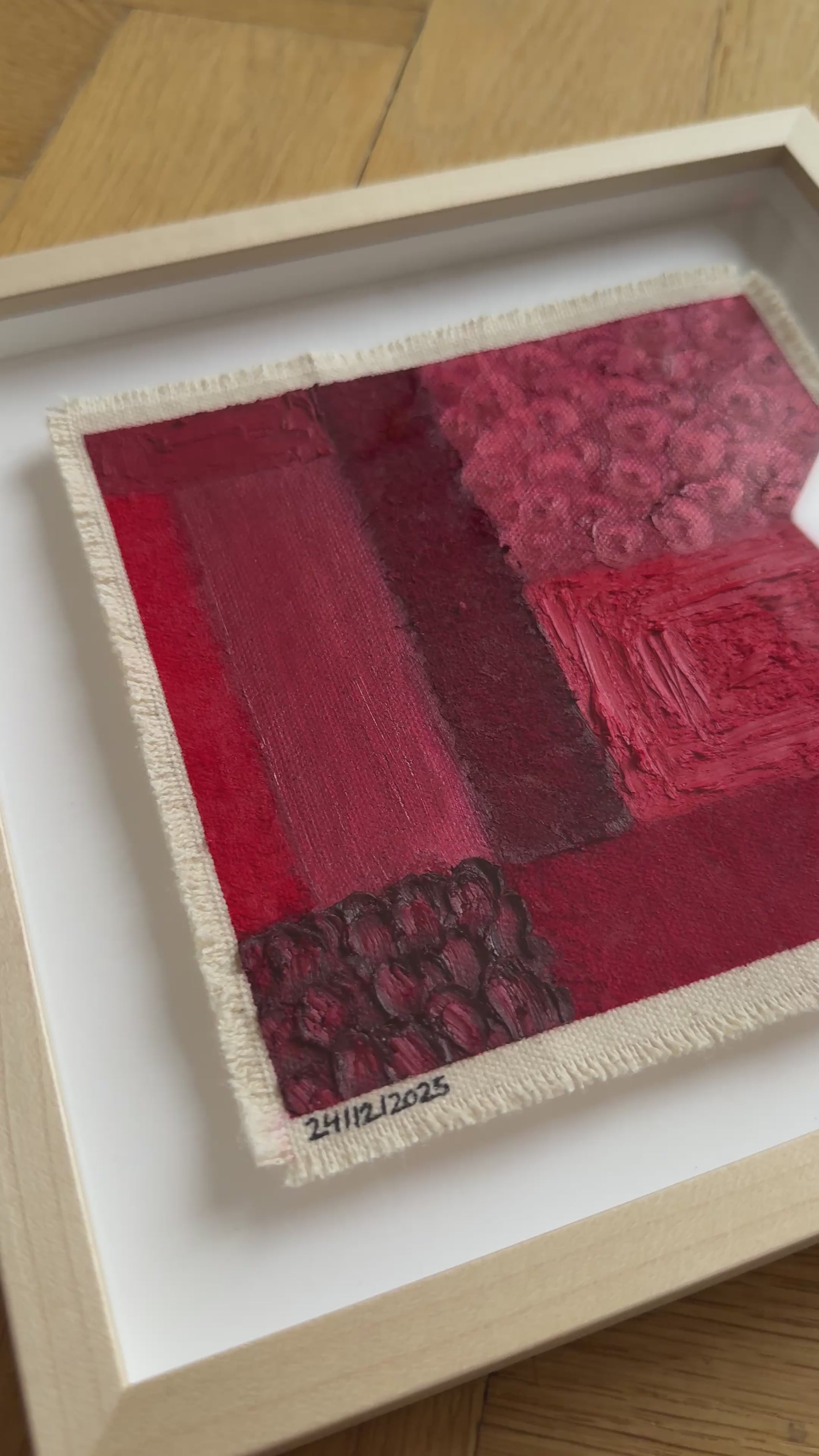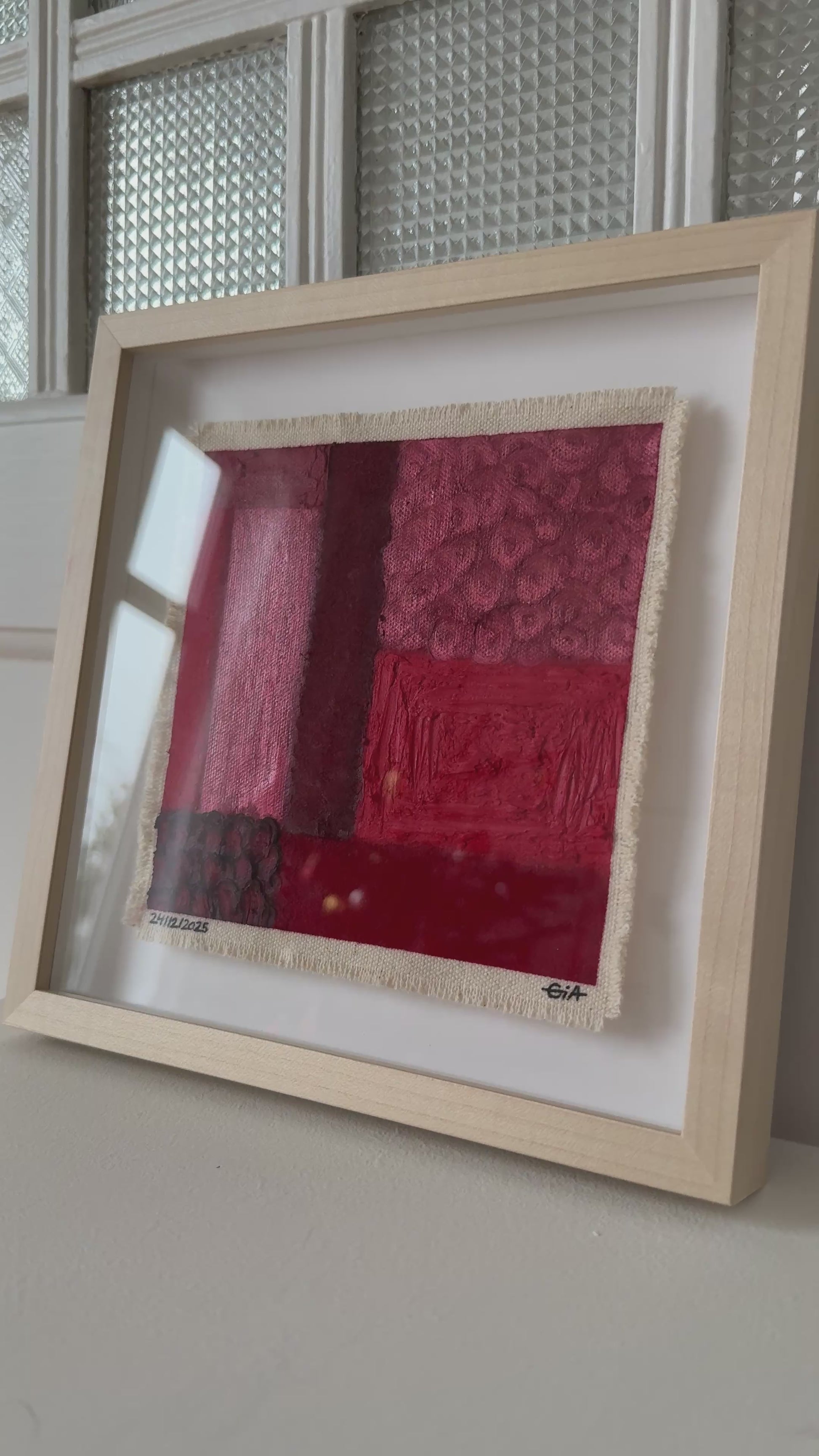 Painted with rich, vibrant oil pastels on raw heavy canvas, each artwork is signed and dated, then professionally framed in a natural maple wood object frame with a floating mount behind white glass. The compact frame includes professional hanging and wall stoppers on the back, and is designed for versatile display on the wall, standing upright on a shelf, or laid flat on a table.