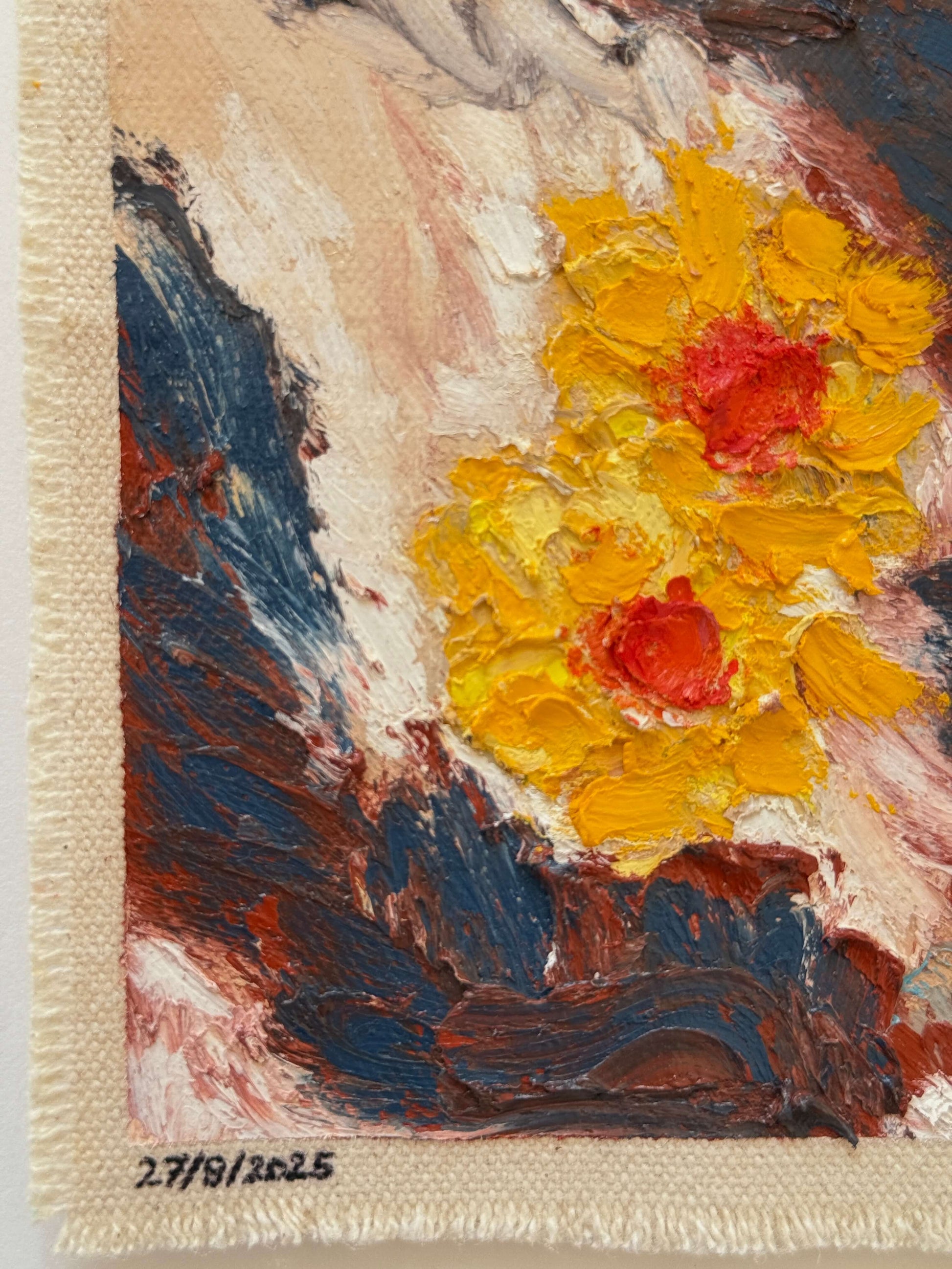 Each of these small works is painted daily, a fragment of time held in color. They capture the fleeting moods, subtle energies, and overlooked details of a single day. Dated and unrepeatable, each study marks its moment in time, a quiet celebration of life as it passes and a fragment to hold close.