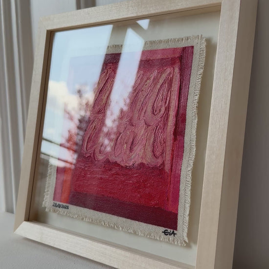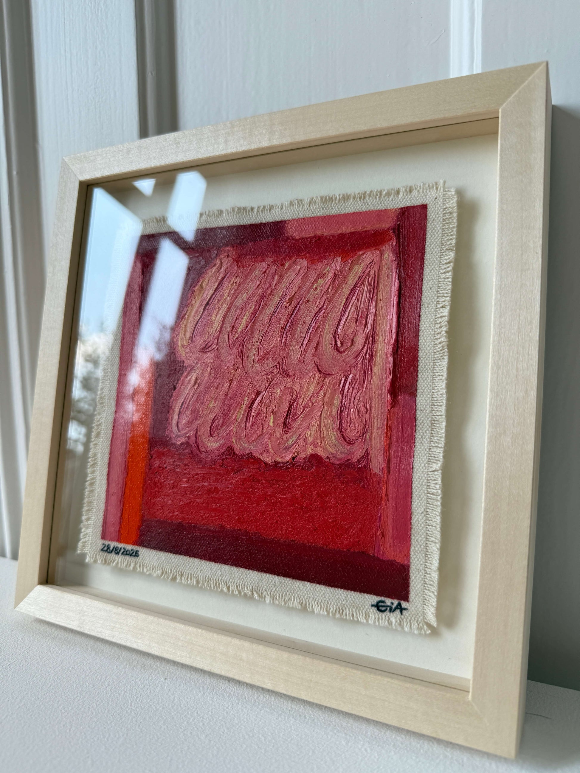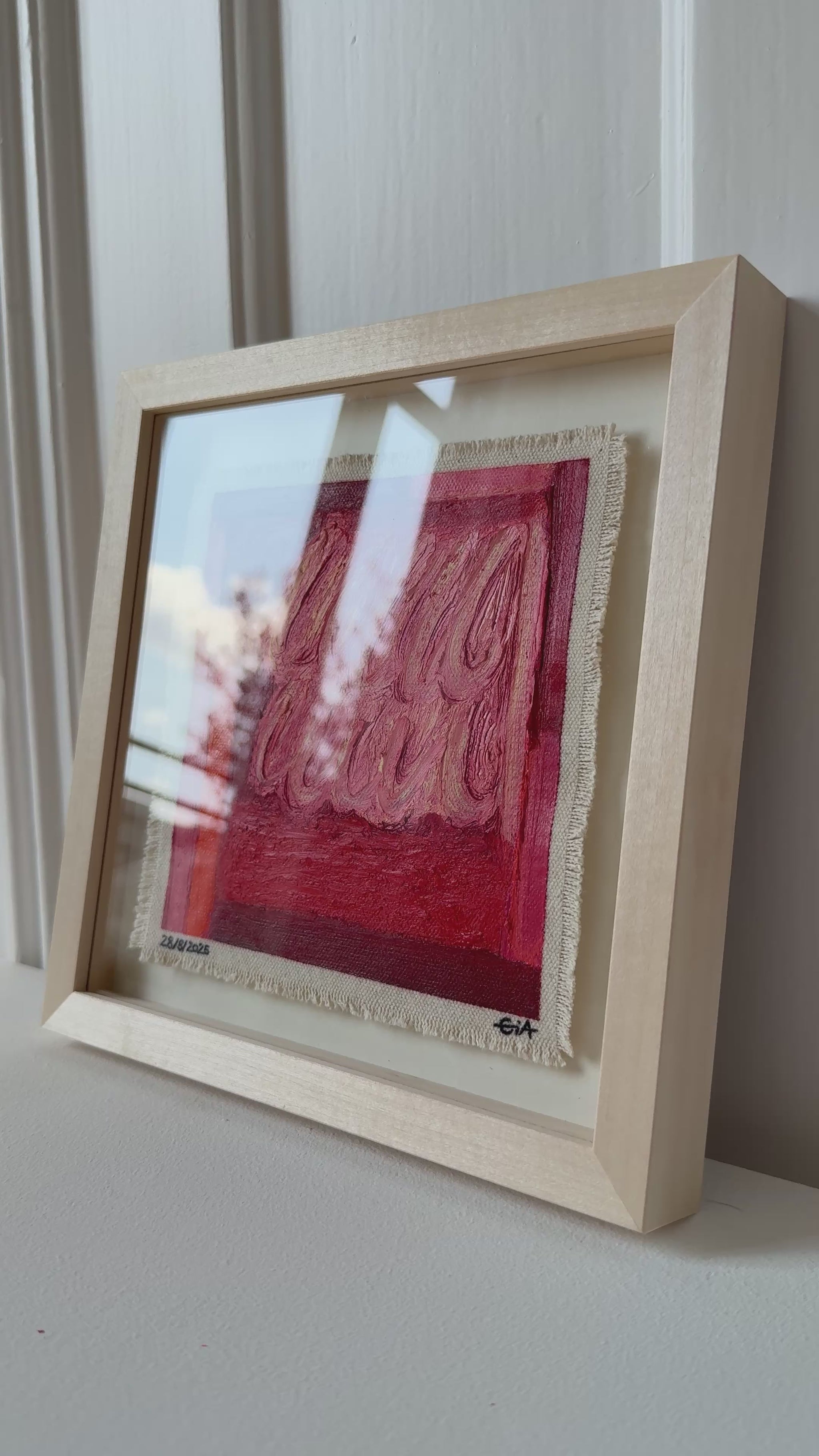 Painted with rich, vibrant oil pastels on raw heavy canvas, each artwork is signed, dated, and professionally framed in a wooden object frame behind glass. The compact frame is designed for versatility, it can be hung on the wall, stood upright on a shelf, or laid flat on a table.