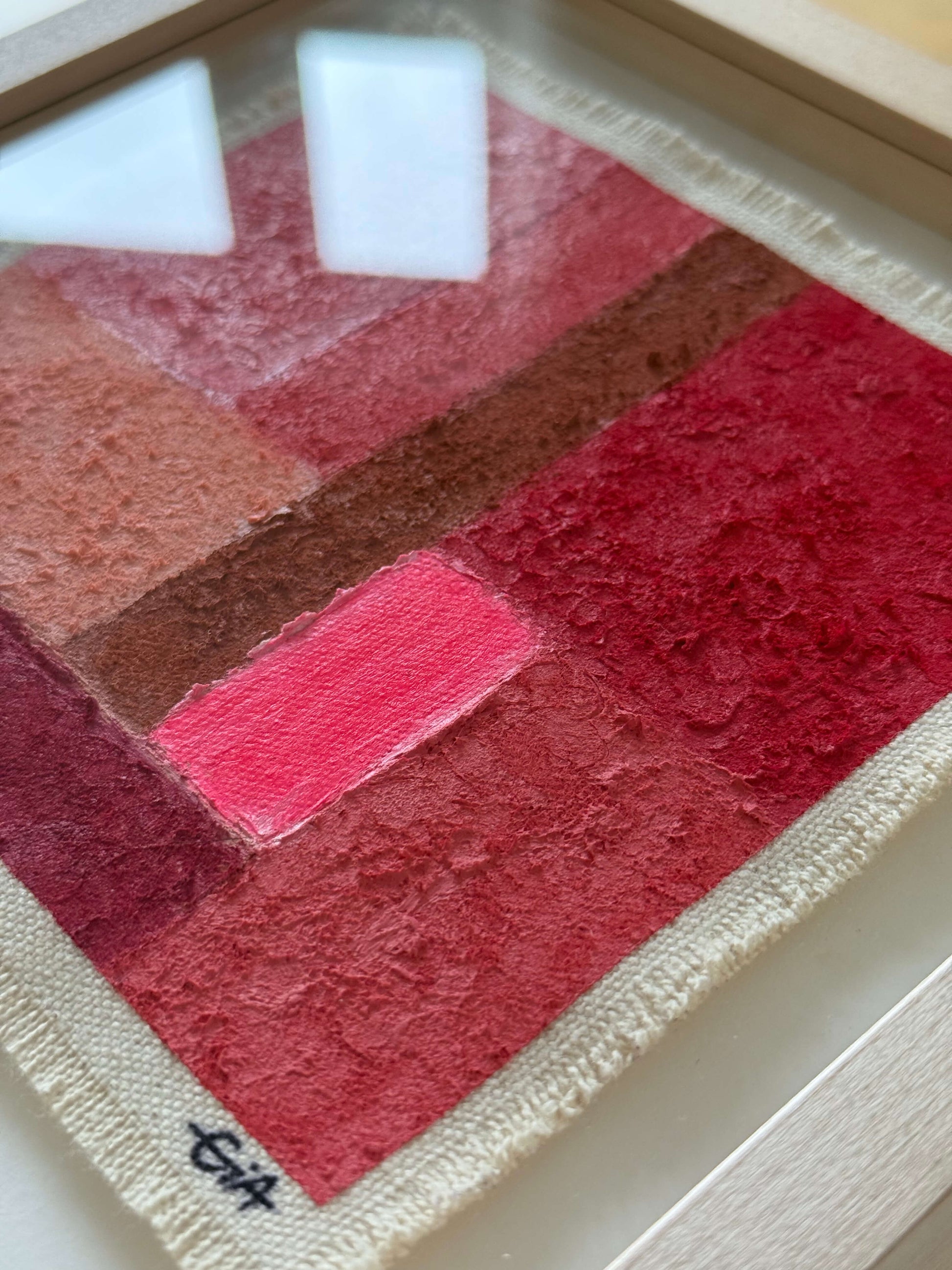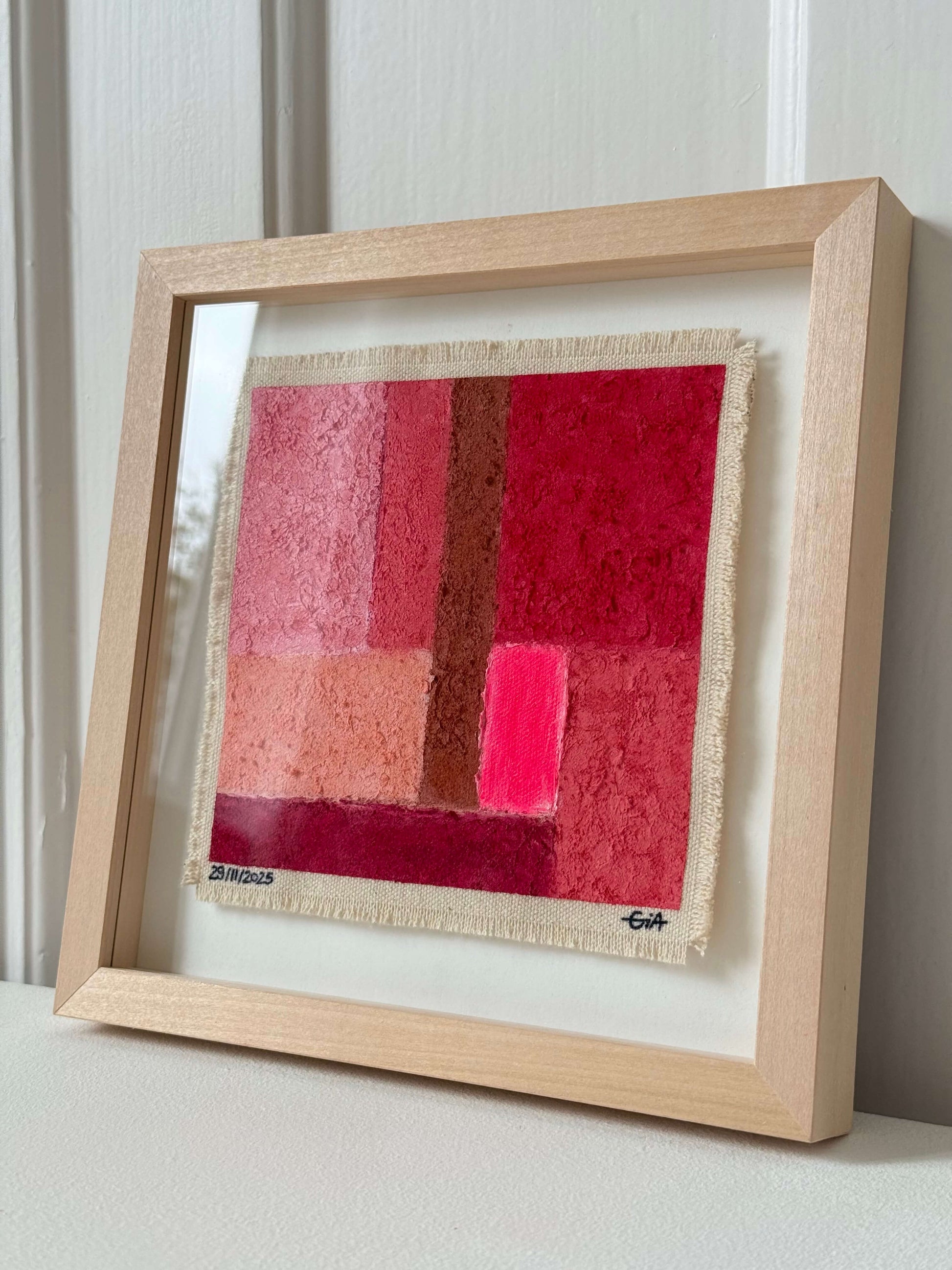 Painted with rich, vibrant oil pastels on raw heavy canvas, each artwork is signed, dated, and professionally framed in a wooden object frame behind glass. The compact frame is designed for versatility, it can be hung on the wall, stood upright on a shelf, or laid flat on a table.