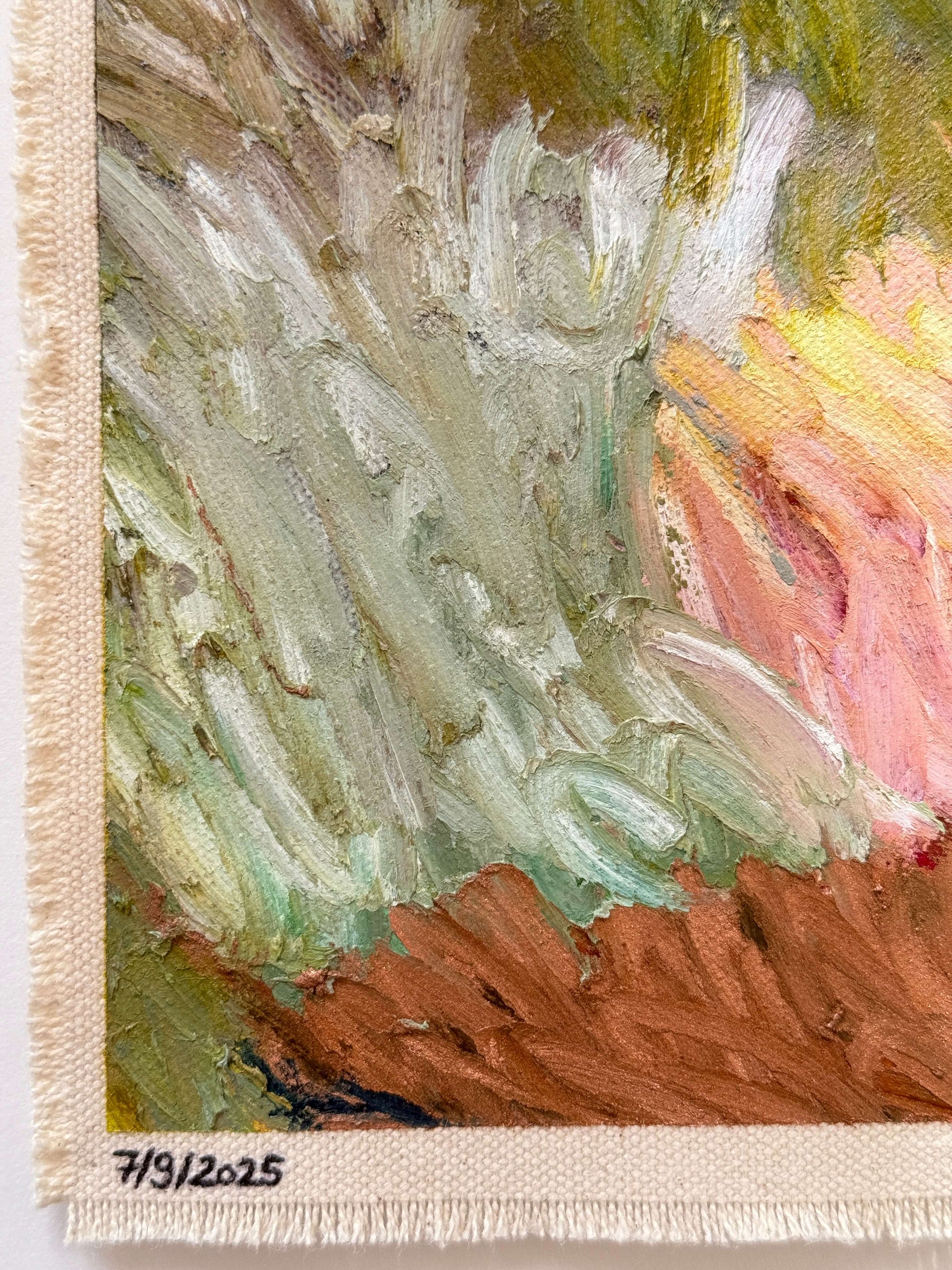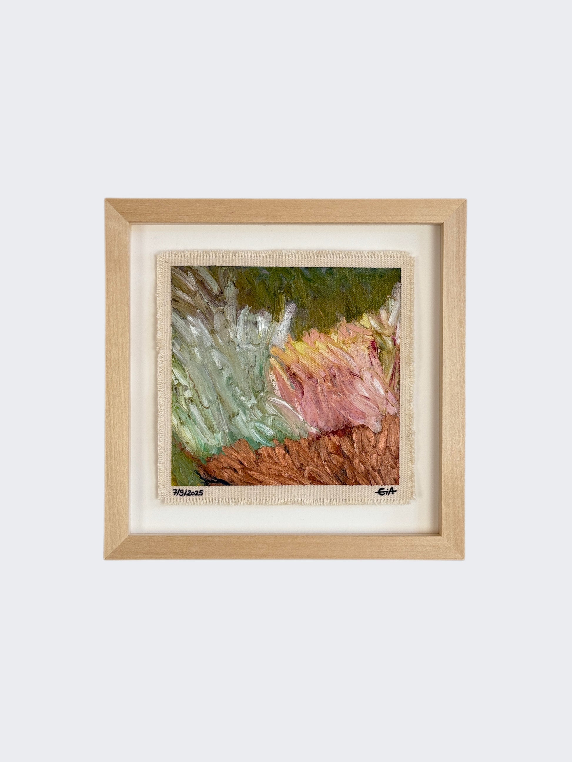 Each of these small works is painted daily, a fragment of time held in color. They capture the fleeting moods, subtle energies, and overlooked details of a single day. Dated and unrepeatable, each study marks its moment in time, a quiet celebration of life as it passes and a fragment to hold close.
